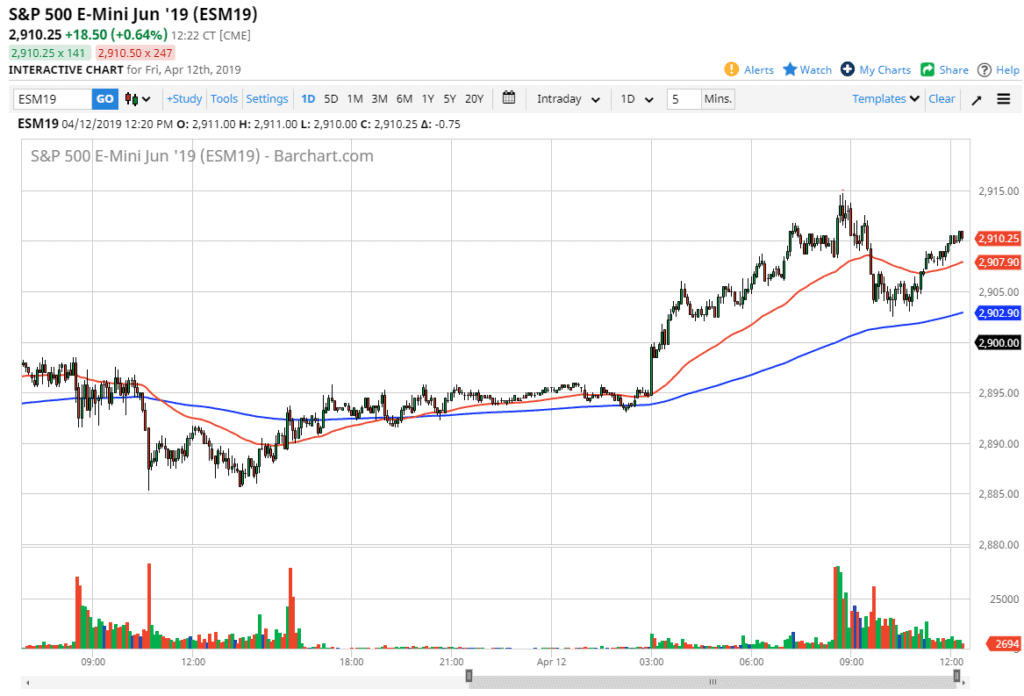 The S&P 500 E-mini futures contract fell rather hard at the open of New York trading after a positive European and Asian session. In fact, we reach down towards the 2902 level before turning around. It seems as soon as the Europeans left the market, the Americans picked up the ball and continue to go higher.