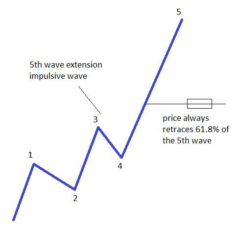 In genere, la natura delle prime quattro onde fa pensare a un movimento correttivo che si è concluso, ed è questo che rende difficile prevedere un’eventuale quinta onda. Tale confusione porta i trader ad allinearsi sull’altro lato del mercato, solo per vedere il prezzo esplodere nella direzione opposta. Tuttavia, anche il trading su un’estensione di quinta onda è difficile, si possono realizzare trade fruttuose dopo la sua conclusione, visto che il prezzo ritraccerà almeno il 61,8% della lunghezza della quinta onda. Ciò significa che un buon modo per fare trading con questo tipo di onda impulsiva è utilizzare uno strumento di ritracciamento di Fibonacci, misurare la quinta onda per scoprire il livello del 61,8% e aspettare che esso venga raggiunto.
